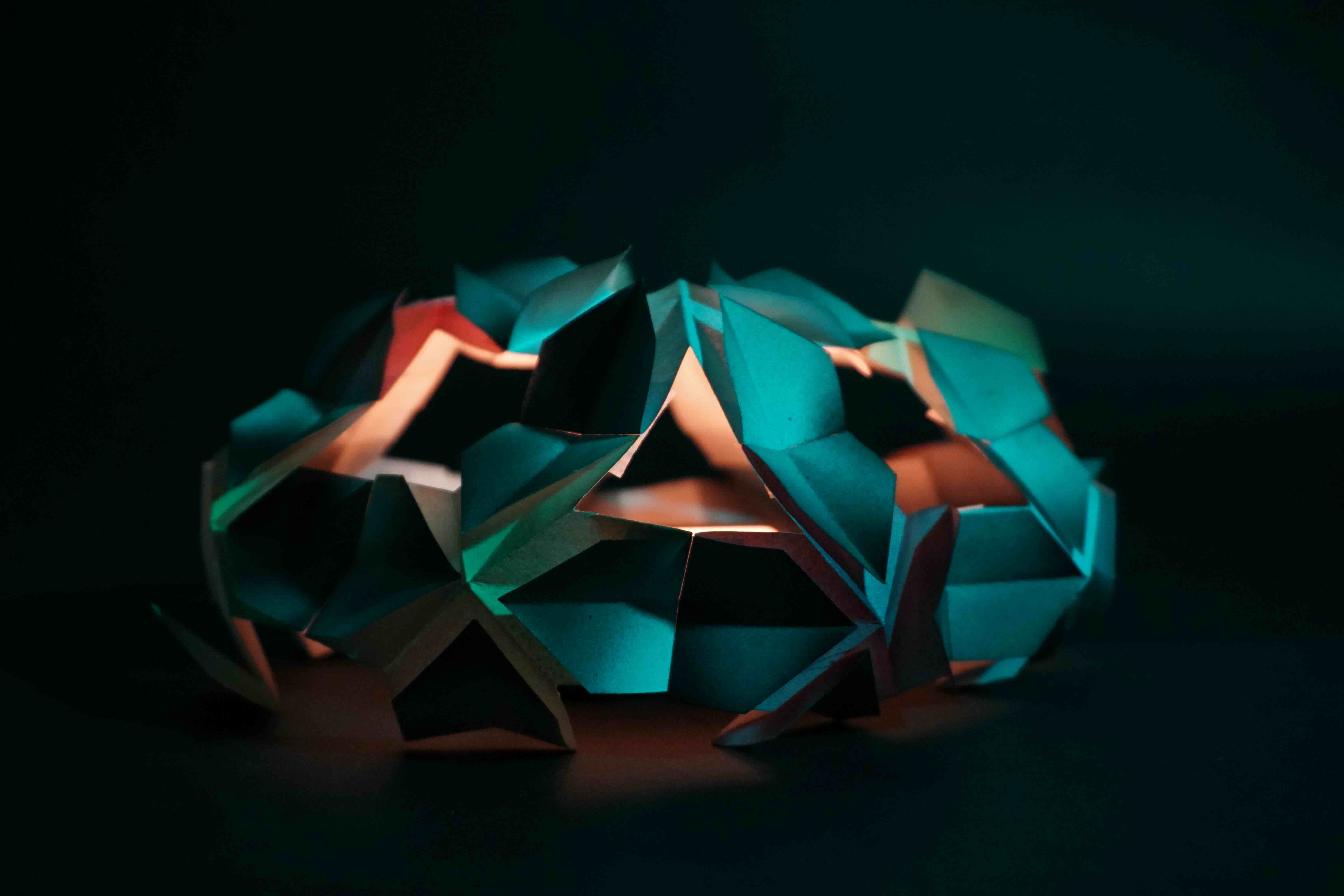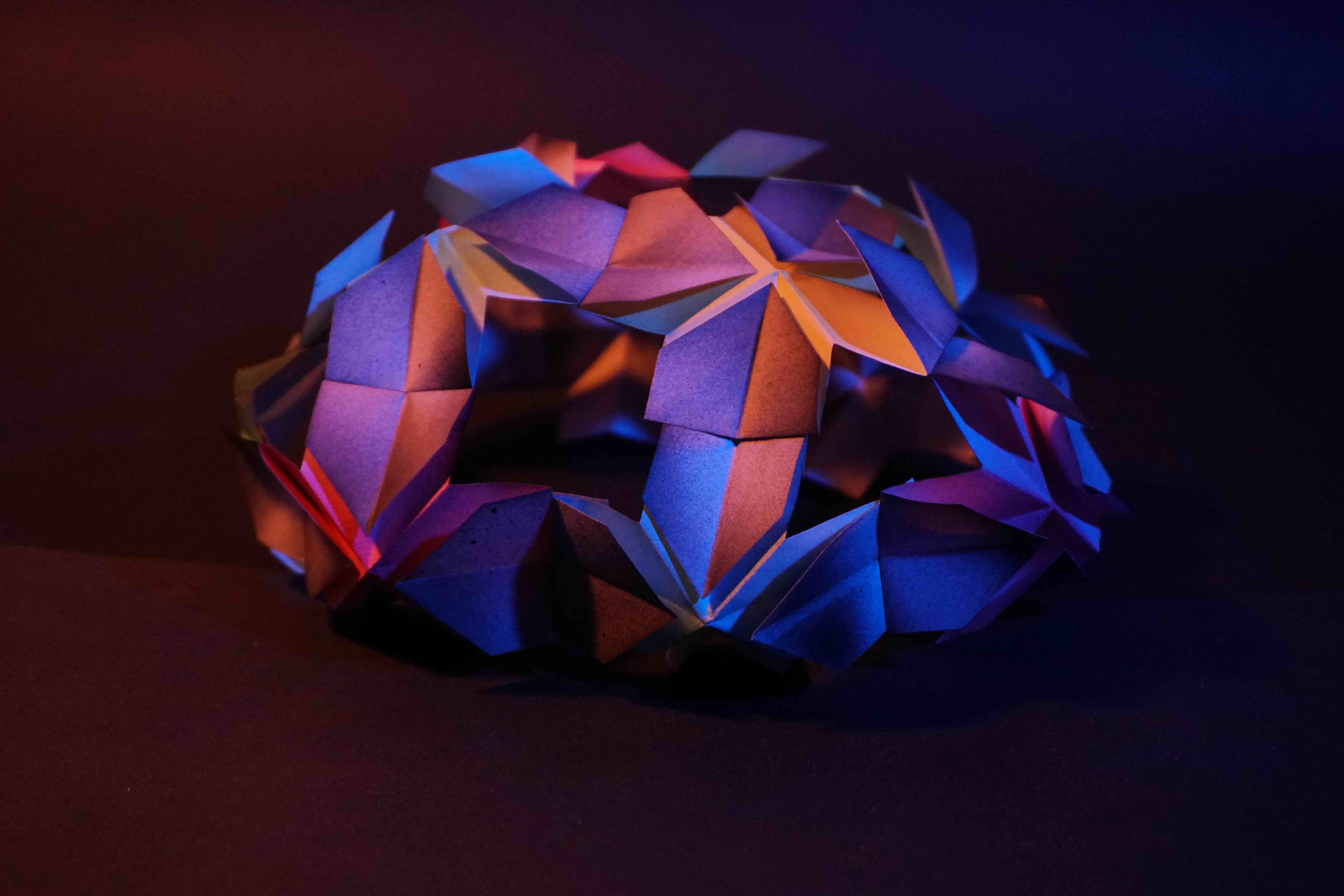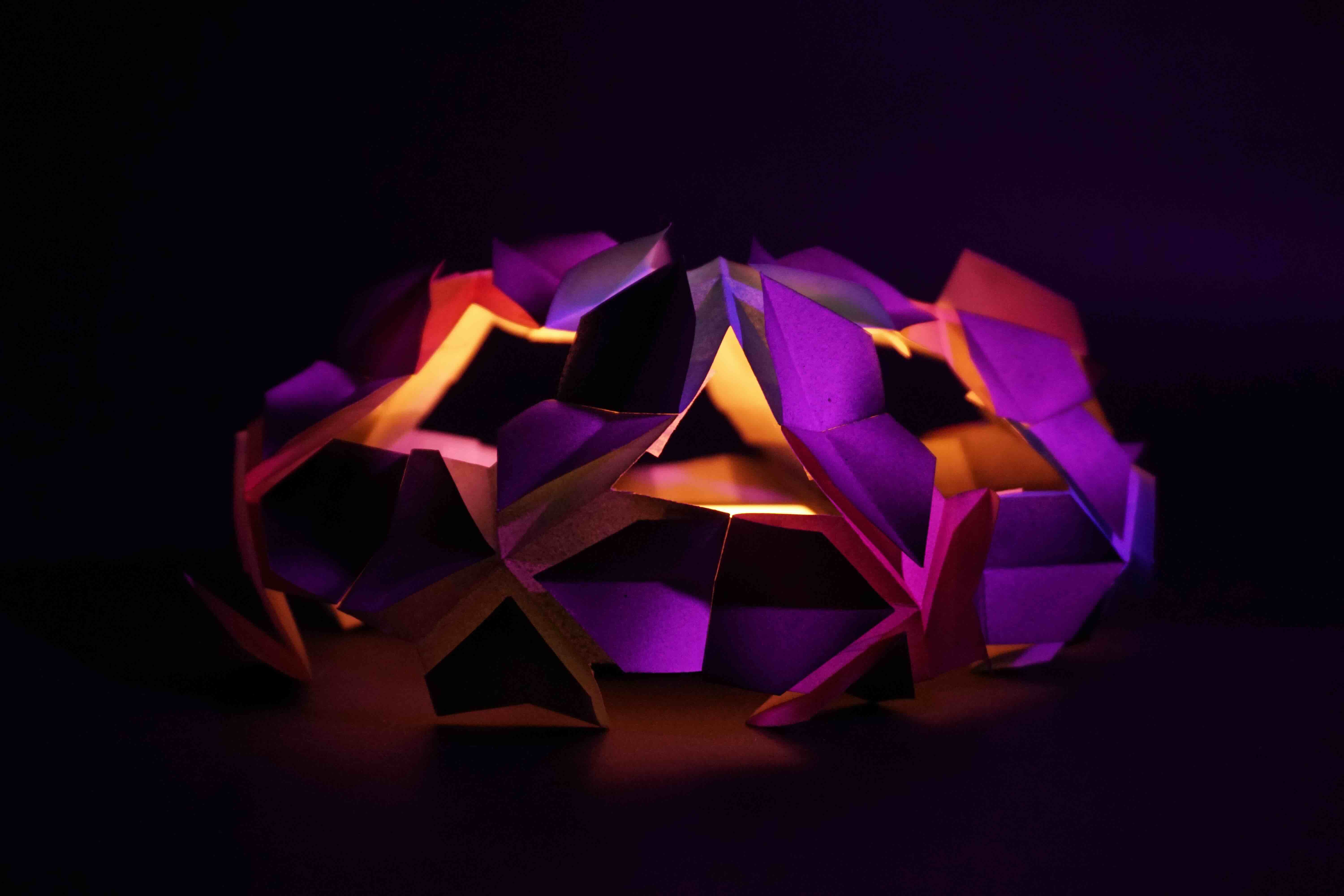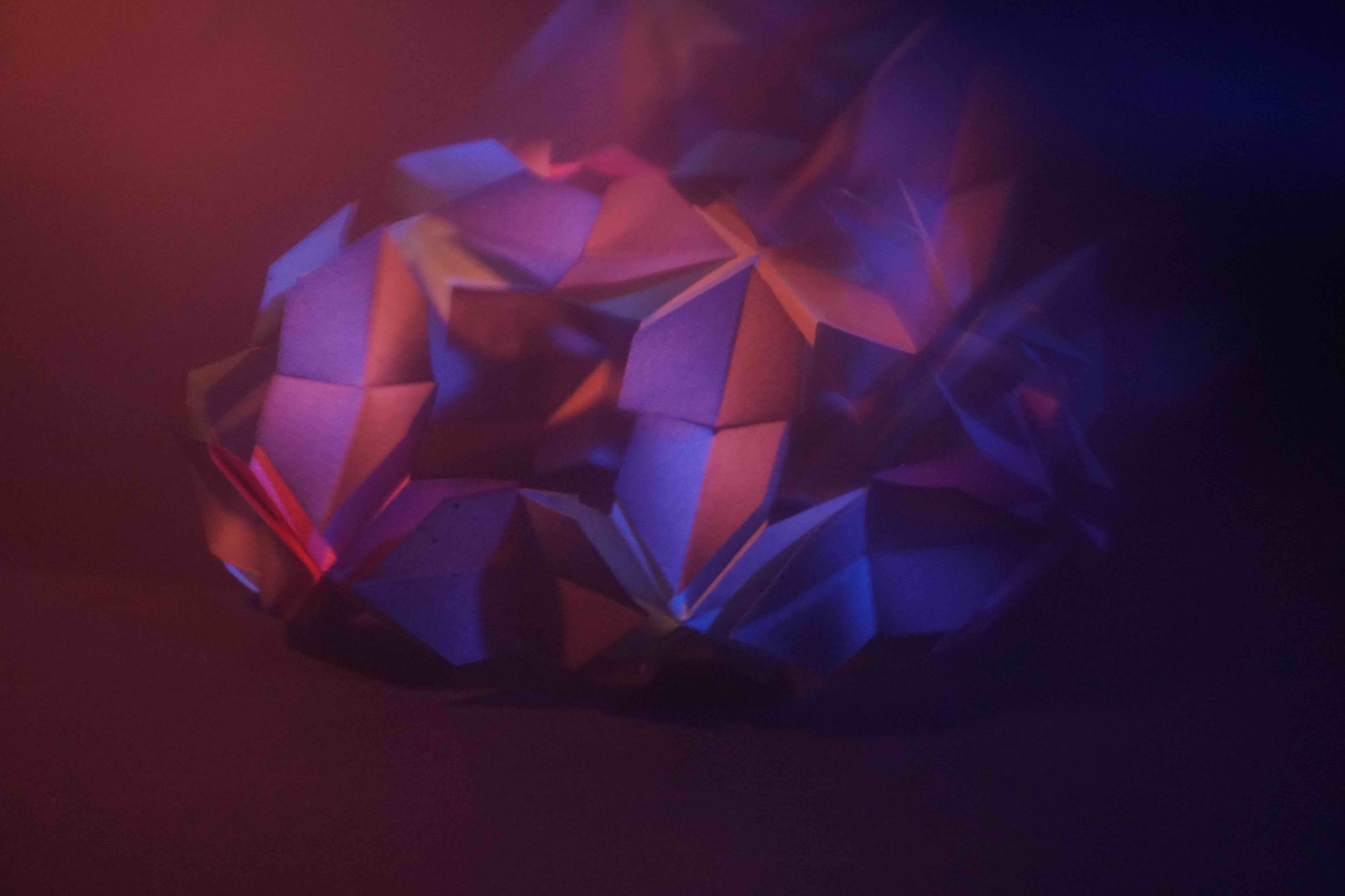 Using an origami-based paper structure, spray-painted surfaces, and controlled lighting, I explored how shadows, reflections, and layered colour could transform the same form into different visual outcomes. The project focuses on how a simple handmade object can shift in mood, depth, and atmosphere through light and colour.
